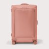 By looking at capacity, maneuverability, and durability, the designers here at Dagne Dover perfected this smaller pink checked luggage to fit the needs of everyone.